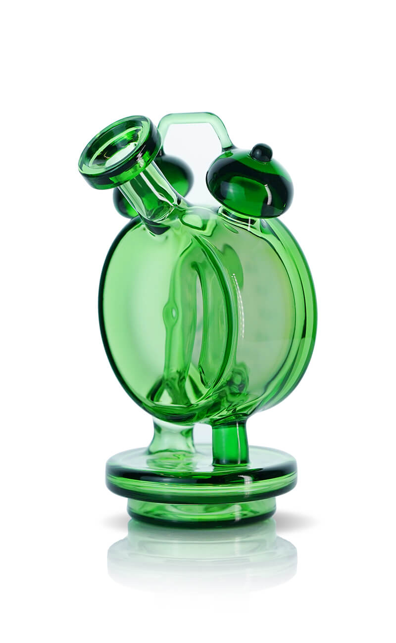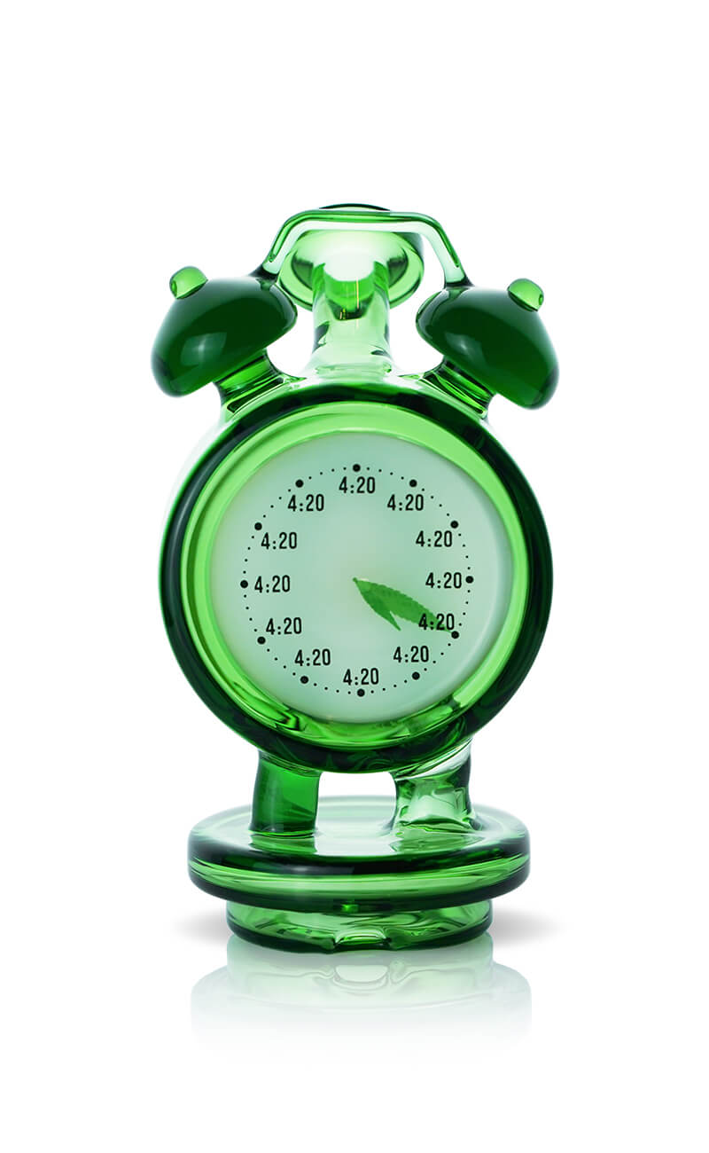 The Alarm Clock Glass is a specially designed accessory for the Bomb Erig, offering enhanced smoke circulation for a smoother and more flavorful dabbing experience. As the clouds pass through the creatively shaped clock design, the optimized airflow ensures every hit is clean and satisfying. Crafted from vibrant green transparent glass, it complements any Bomb Erig color, adding a playful and stylish touch to your sessions. Both functional and eye-catching, it’s the perfect addition to your collection.