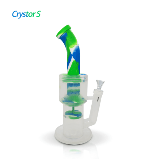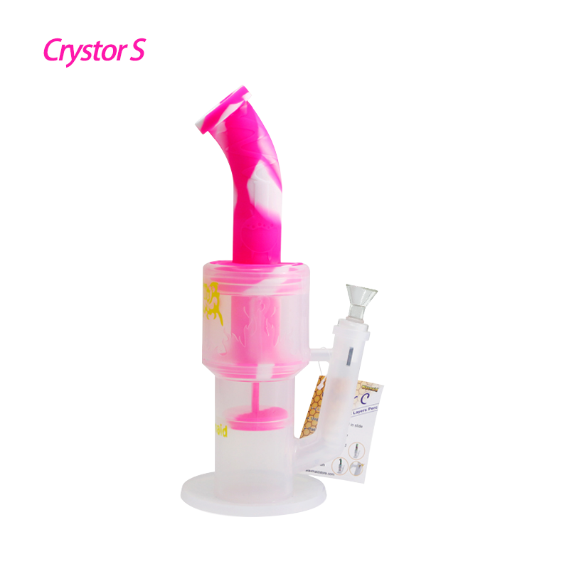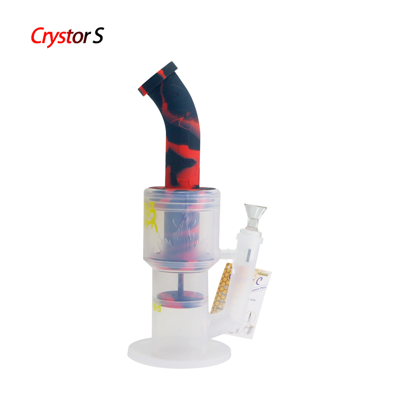 Waxmaid Crystor S transparent silicone double percolator water pipe with ice catcher is made of platinum-cured silicone material. It’s certified “food safe” for culinary applications and the safety level goes above and beyond FDA approval standards. It’s solid, durable, and safe to use directly.