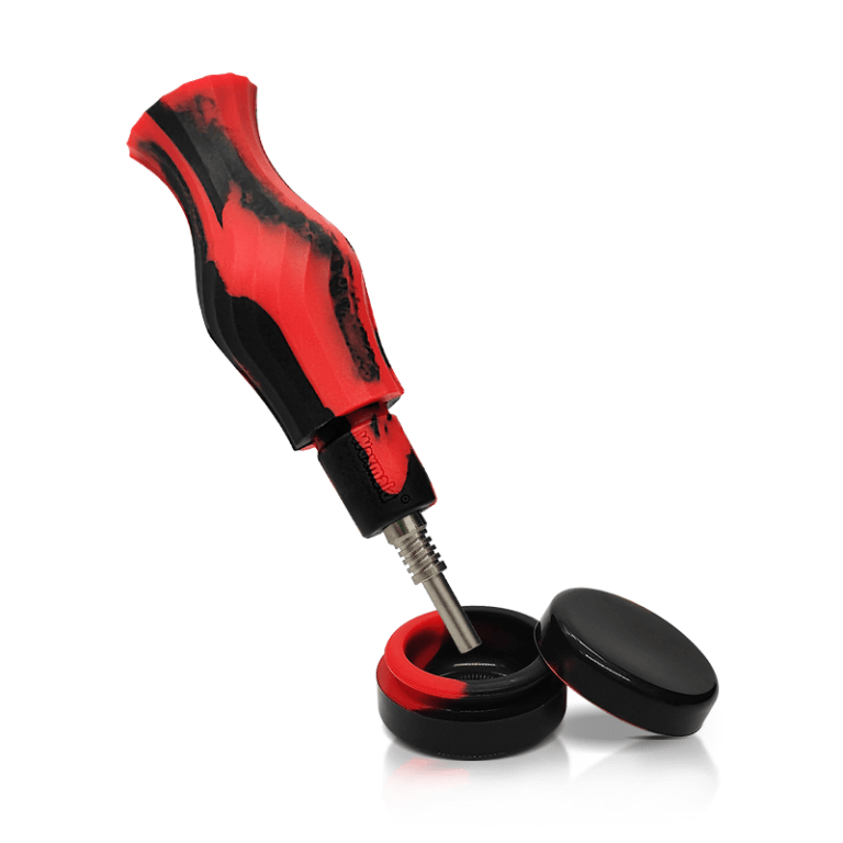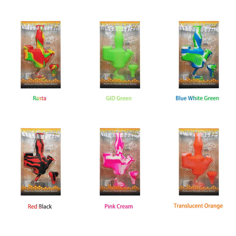 Soldier shape design, Waxmaid Soldier Nectar Collector is durable and aesthetically pleasing. The flexible silicone body surrounds a thick glass water chamber that easily pops in and out for quick filling and cleaning without leaking out. The combination of silicone and glass design not only solves the problem of easily broken glass but also makes the smoke volume visible in smoking rigs.